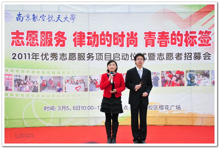 3月5日上午,由校团委主办、校团委青年志愿者工作部承办的“志愿服务律动的时尚 青春的标签”——sunbet申搏官方网站2011年优秀志愿服务项目启动仪式暨志愿者招募会在将军路校区樱花广场举行,共有73项志愿服务项目进行现场推介。在“志愿者们,出发!”号召声中,sunbet申搏2011年志愿服务活动正式启动。 启动仪式上,青工部首先通过视频回顾2010年sunbet申搏志愿服务成果,集中展现了去年志愿服务的10个精彩瞬间。随后,2011年的73项志愿服务项目进行了现场推介,包括庆祝建党90周年、2014年南京青奥会、关爱农民工子女、校庆60周年等志愿服务项目。这些项目主题鲜明、计划周密、方案详实,契合了学生们关心的热点,吸引了1000余名学生报名参加。 在启动仪式结束后,电子信息工程学院、计算机科学与技术学院志愿者走进学校西苑社区开展“简易家电维修”志愿服务活动,外国语学院志愿者到通胜客运公司开展“助力青奥,司机学外语”志愿服务活动,校青年志愿者协会也把“爱心家教”志愿服务活动带到了太平花苑社区。志愿者们以热情、周到、细致、专业的服务得到了服务对象们一致好评,也得到了学校以及共青团江宁区委领导的认可。