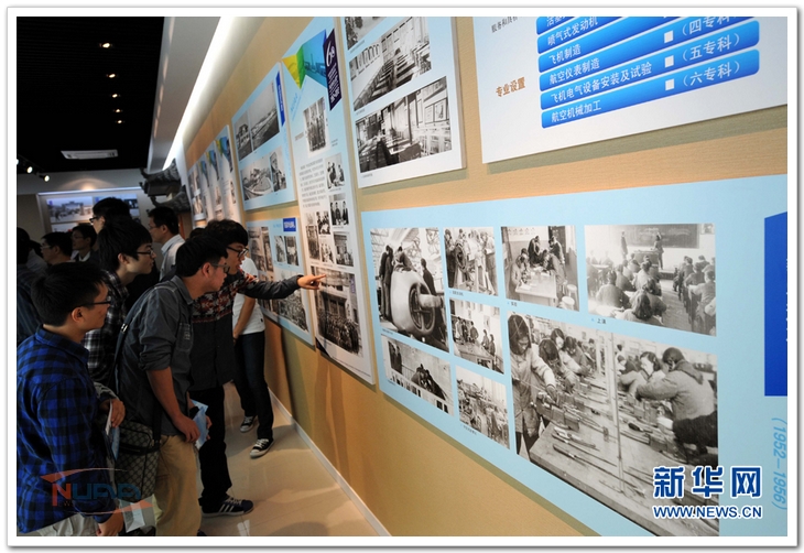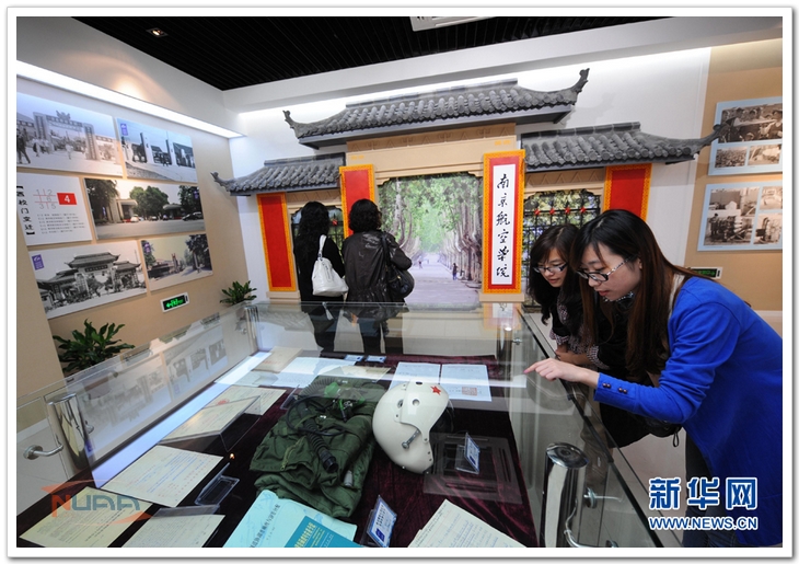 该展馆还集中展示了学校不同发展时期的一批珍贵文件、教材、照片及其他实物,其中南京航专时期的通行证,张阿舟1949年的博士论文及其参与建设新中国第一架飞机的立功奖状等,以及20世纪五六十年代的一大批珍贵照片是第一次公开亮相。另外,“天巡一号”微小卫星样机、随“神舟六号”遨游太空的学校校旗、杰出校友、试飞英雄李中华捐赠的“歼十”试飞服等也在公开展出。