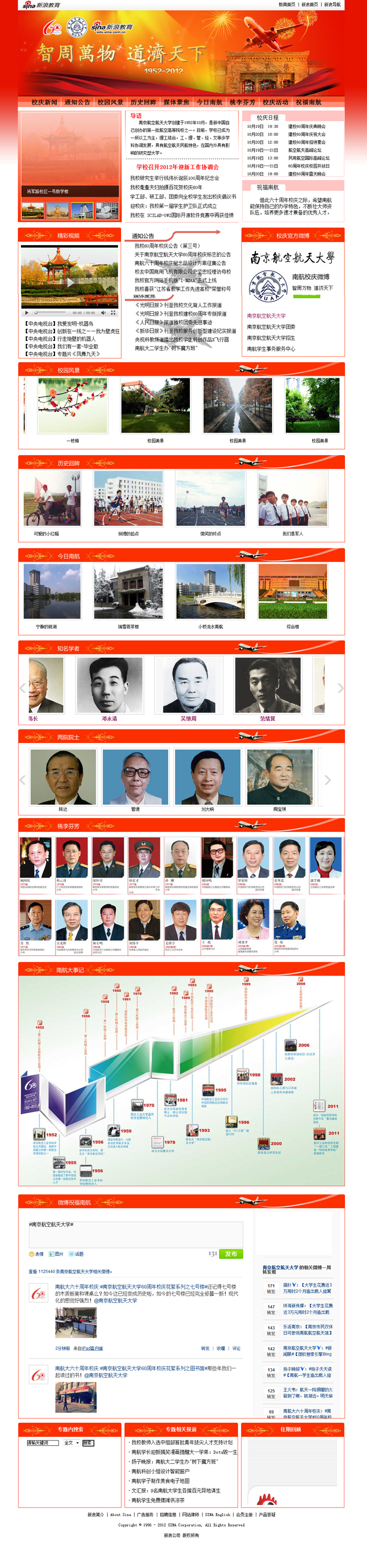 国内著名门户网站——新浪网近期开通sunbet申搏60周年校庆专题网站。该专题网站以sunbet申搏新闻网及校庆网站为基础,设有校庆新闻、通知公告、校园风景、历史回眸、媒体聚焦、今日南航、桃李芬芳等多个栏目,扩大sunbet申搏校庆宣传的网络宣传力度,让更多海内外校友及社会各界了解sunbet申搏校庆相关活动。欢迎大家登陆。