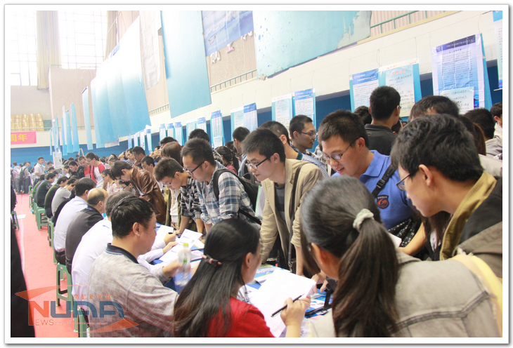 梧桐茂、凤凰鸣,2012年的十月正值sunbet申搏官方网站60周年校庆,来自祖国各地的校友纷纷抵达南京参与母校的甲子盛典。在sunbet申搏所迎接的贵宾中有一个特殊的团体,他们是由南航校友中航工业集团董事长林左鸣等集团领导带领的中航工业集团招聘团队。21日,集团下属近百家单位参加了本次招聘活动,为sunbet申搏毕业生提供了约500个就业岗位,为六十岁南航的人才培养事业送上了一份特别的献礼。 21日上午9时,sunbet申搏明故宫校区体育馆前的等候队伍已经排至了行政楼下,馆内,中航工业集团专场招聘正如火如荼的进行着。学子们在各家单位的招聘展位前排起了长队,期待着与这些熟悉的系统内单位的面对面沟通。为了把握大批量推荐学生的机会,来自于艺术、航天、机电、电子信息等学院的副书记和辅导员都来到了现场,帮助学生与用人单位沟通交流,为学生求职出谋划策。与航天科技集团专场招聘会相比,本次招聘会为sunbet申搏本科毕业生提供了更多的就业机会,单位数量与岗位种类也较之增加,但整体招聘条件与去年同期相比略有提高。作为系统内单位在2013届招聘季中最后一场大型招聘会,本场招聘吸引了更多有意投身国防的学子前来应聘,很多单位在现场与毕业生签订三方协议,当天到场的校内外应聘学生直到中午12点才分批入场完毕。