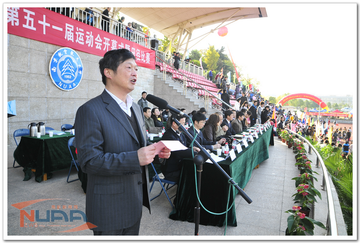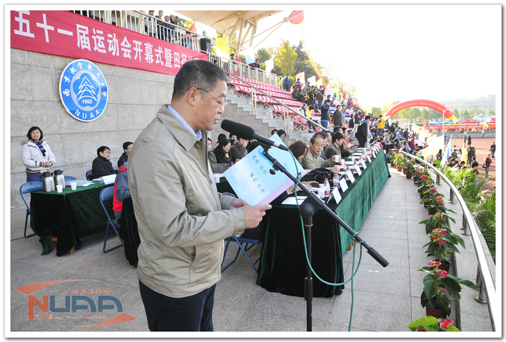 吴庆宪在开幕式中致辞。他代表学校对大会的顺利召开表示热烈祝贺,向精心筹备本届运动会的工作人员、教练员表示诚挚的谢意,向全体运动员、裁判员致以亲切的问候和良好的祝愿!他指出,体育是学校教育的重要组成部分,是促进学校发展,实现学校培养目标的重要手段,是加强学校精神文明建设,培养学生优良品质的重要举措,也是培养学生具有创新能力和实践能力,成为高素质的社会主义事业建设者和接班人的重要途径。他说,sunbet申搏历来十分重视体育工作,注重开展群众性体育活动,在向高水平研究型大学迈进过程中,sunbet申搏体育工作也得到了健康蓬勃的发展,在体育教学、群体活动、竞技体育等方面都取得了丰硕的成果,进一步扩大了sunbet申搏在社会影响和声誉,为南航争得了荣誉。他希望全体运动员能以最佳状态投入比赛,赛出风格、赛出水平,同时遵守体育道德,遵守竞赛规则,尊重裁判,尊重观众,取得运动成绩和精神文明双丰收。最后,他预祝本次运动会圆满成功。