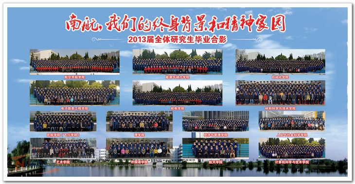 新大学生活动中心入口处的台阶下,“南航,我们的终身背景和精神家园”2013届全体毕业研究生合影展板分外醒目,吸引着入场的毕业生们驻足观看、寻找自己的身影,不时拍照留念。此刻,身着学位服的毕业生同学们既神采奕奕也依依不舍,心中交织着学业有成的喜悦和对校园生活的留恋。