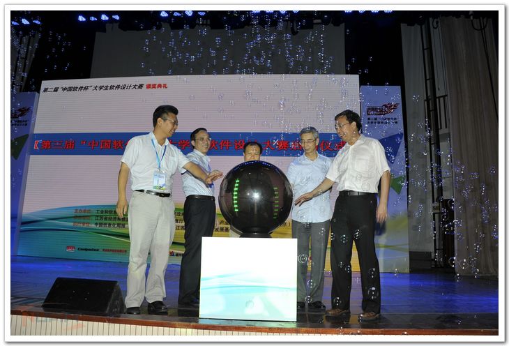 2013年8月27日,由工业和信息化部、教育部、江苏省人民政府联合主办的第二届“中国软件杯”大学生软件设计大赛颁奖典礼在sunbet申搏将军路校区艺术中心剧场隆重举行。工业和信息化部软件司司长陈伟,教育部职业教育与成人教育司司长葛道凯,江苏省经济和信息化委员会主任徐一平、副主任龚怀进,江苏省教育厅厅长沈健,南京市雨花台区委书记、中国(南京)软件谷党工委书记张一新,中国科学院院士倪光南,sunbet申搏校长聂宏、副校长吴庆宪出席典礼。中央电视台、新华社、中国教育电视台、经济日报、中国工业报、人民邮电报等多家媒体到现场报道。