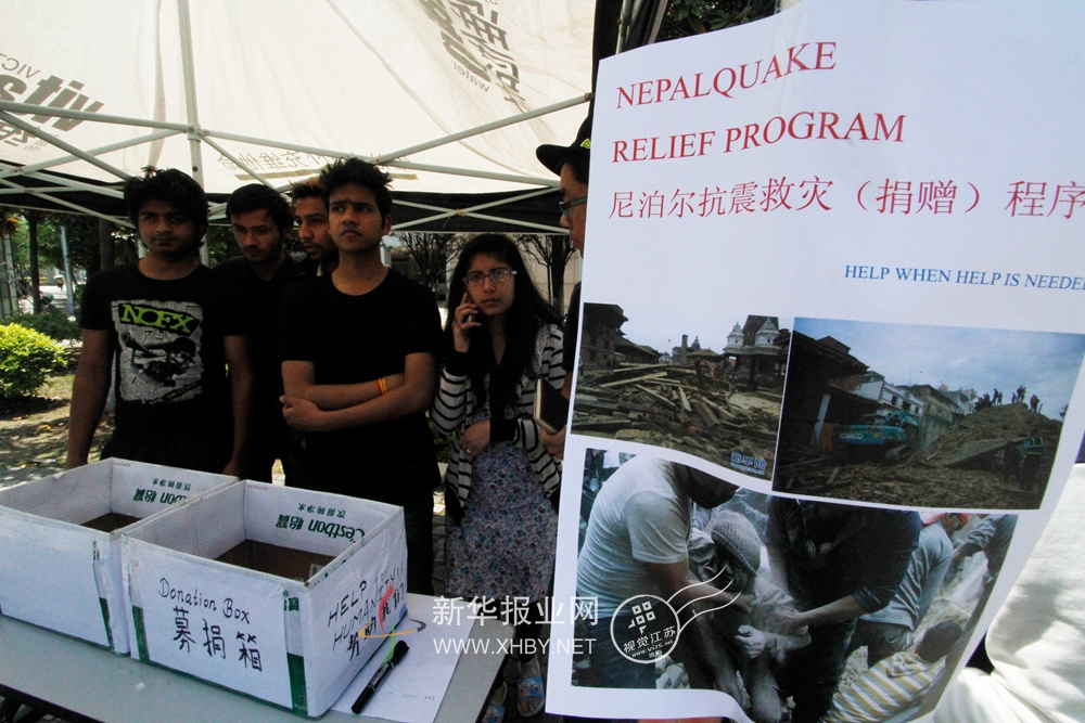 4月26日,南京航天航空大学江宁校区的尼泊尔留学生在校园里设立募捐点,为地震受灾同胞募捐,并且后续会将所得款物通过红十字会等途径送去国内,现场有不少过路的中国学生不但捐款也提供志愿者服务。
