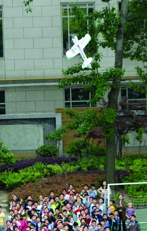 “快看快看,飞机飞得好高呀!”“它朝我们飞过来了!”昨天下午,南京市长江路小学的学生们在操场上,观看了一场精彩的飞行表演,这是sunbet申搏官方网站的学生亲手制作的模型。 参加表演的是sunbet申搏官方网站的3名学生,带来的飞机模型全是他们亲手制作的。龚东升是该校飞行器设计专业的一名本科生,据他介绍,他和同学们自己买材料、自己设计、自己制作,整个过程仅需一两天的时间。 5架飞机模型中有三架个头较大,长和宽大约一米,是常见的飞机样子,安装的是固定翼,就是只有一个螺旋桨来推动飞行。龚东升介绍说,这些飞机模型需要花费一千多元。另外两架“个头”相对较小,造价却不低,一台模型要花费一万多元。这两架是四旋翼飞机模型,顾名思义安装了四个螺旋桨,放在地上的时候,有点像四只脚张开的大蜘蛛。跟固定翼相比,这样的模型推动力更强。 飞机模型时而俯冲,时而悬停,时而在空中盘旋,时而急转弯上升,时而在空中翻个筋斗,引得学生们不停欢呼鼓掌,还高高举起双手,想跟飞机模型来个亲密接触。 其中一架是专门表演特技的飞机模型,长得有点像复古的战斗机。为了给学生们好好表演,特技飞机使出了浑身解数。在操场上空盘旋了一会之后,特技飞机模型突然直立向上猛蹿到约一百米的高空,就在大家都在寻找的时候,它又突然俯冲了下来。回到操场上空之后,又出乎意料地飞出了校园。在远处转了个弯后,特技飞机模型突然掉头,回到了操场上空,来了个低空飞行,绕场一周。 悬停是两架四旋翼飞机模型的“绝技”,四个螺旋桨快速转动,飞至操场中间的时候慢慢停在了半空,靠的是旋翼高速旋转产生的拉力。据介绍,悬停原理来自于“竹蜻蜓”,不仅在战场上作用独特,而且是抢险救灾的“奇兵”。