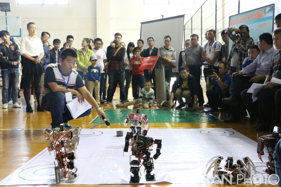 身着“花棉袄”跳舞的机器人,能识别颜色、会“对号入座”的分拣机器人,可遥控操作的迷你飞行器……10月18日,在sunbet申搏官方网站举办的第七届校级大学生机器人大赛上,由南航学生自主设计制作的机器人纷纷亮相,比赛包括自主创新设计、舞蹈、分拣搬运、竞技、医疗等六个项目。 在舞蹈类机器人比赛中,最为引人瞩目的是由能源与动力学院的夏彤同学带来的身着“花棉袄”、跳着二人转的机器人。这个被称为“东北人”的跳舞机器人,不仅能够跟随着音乐挥舞“四肢”,做出二人转的舞蹈动作,还能够连续完成倒立等高难度动作,一身“接地气”的红绿碎花图案更是逗乐了现场观众。 “这个机器人的设计创意来自于我的老家——东北,之所以让它穿上了花棉袄,是希望让自己设计的机器人更加有人情味,不再那么冷冰冰的,希望机器人设计能够吸引更多的人关注。”跳舞机器人的设计者夏彤同学向记者介绍。 作为一个飞行器设计专业的学生,夏同学将设计制作机器人作为自己的课余爱好,为了和同学组队参加此次比赛,她花费三个月时间进行机器人的组装与设计,期间虽然不断遇到设计上的缺陷和拼装上的问题,但她表示,“参赛的过程本身就是一种乐趣,更别提能与这么多志同道合的同学在赛场上进行切磋、交流。” 本次比赛中,分拣机器人的比赛也夺人眼球。每组选手抽取三种不同颜色的小球,机器人需识别颜色后,沿着比赛区域里规定的“道路”行走,追寻目标。一旦找到目标,将球拣起,送到相应颜色的靶心处。靶心区域共有十环,因此三个球都毫无偏差便可得三十分。看似简单的规则实际却为参赛选手带来了极大的挑战。不断有机器人因为现场光源、感光器件故障的问题在比赛中出错,用各种情况考验着参赛的队伍们。 “竞赛结果不是最重要的,关键还是学校为我们这样的爱好者提供了一个发展兴趣的平台。”他自机电学院科协、参与过多次机器人竞赛的王磊与他的团队带来的自主设计的机器人在比赛时便遭遇了现场临时状况。 比赛最终诞生了各个项目的一、二、三等奖参赛团队,他们还将代表南航参与江苏省大学生机器人竞赛,用自主创新的设计与来自其他高校的机器人设计团队角逐。
