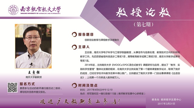 2014年起,主持南京大学《MOOCs/SPOC混合式教学》课题研究与应用,提出了“教学、实践和学生管理”整体化发展的框架,在南京大学主持实施了第一个翻转课堂教学试点,取得了良好的成效,已经在学校本科教学改革中得以推广。主持建设了南京大学第一门创业慕课课程《走进创业》,上线第一个月修读人数突破万人。