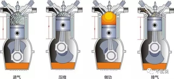 螺旋桨老爷机当然用的是活塞式汽油发动机,和今天汽车上的汽油机基本一样。我记得一般汽油发动机的四个冲程好像初中物理课就提到过吧,还是高中啊我也记不清楚了。