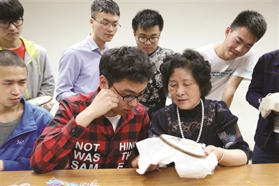 4月17号晚,国家级非遗代表性传承人、中国刺绣艺术大师赵红育老师来到南航,为学生教授刺绣。50人的课堂有将近三分之一的男同学,这些平时学习航空航天相关专业的工科男,拿起针线也是有模有样。