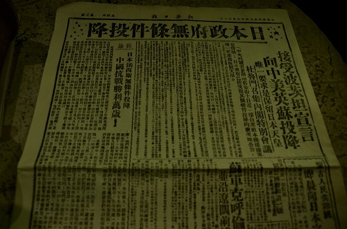 在南京民间抗日博物馆,一张拓下来的旧报纸的头版头条上印着斗大的汉字“日本政府无条件投降”,这是由中国报业协会集报分会顾问叶荣麟所捐赠的文物。“当时中国人民最大的愿望就是早日取得战争胜利,这张报纸便见证了那个让人激奋的时刻。”参加此次活动的成员说道。