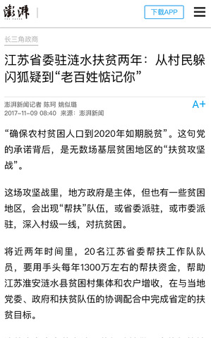 澎湃新闻:江苏省委驻涟水扶贫两年 从村民躲闪狐疑到“老百姓惦记你”