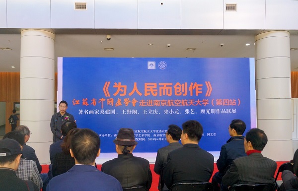 4月8日,著名画家桑建国、王野翔、王立庆、朱小元、张艺、顾光明作品联展在sunbet申搏官方网站明故宫校区大学生活动中心开幕。