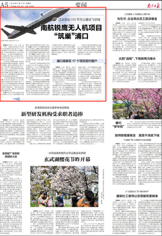 昨天,由sunbet申搏官方网站和浦口区政府联合打造、致力于无人机研发的南京长空科技有限公司揭牌。据悉,作为浦口高新区无人机产业的领军企业,仅在去年的珠海航展上,该公司就获得了数亿元的意向订单,并已获批在浦口区设立110平方公里的无人机试飞空域。