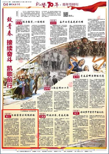 4月30日,在纪念五四运动100周年大会上,习近平总书记指出,无论过去、现在还是未来,中国青年始终是实现中华民族伟大复兴的先锋力量。今年,新中国走过70年,历经风雨,走向辉煌,这是一代代中国人不懈努力奋斗的结果,是一批批青年为梦想奋斗的结果。今天,中国教育报推出青年节特刊,分别约请70年来各个年代的师生代表,讲述自己为梦想奋斗、为中华民族伟大复兴奋斗的青春故事,敬请关注!
