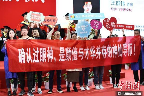 毕业生们向自己喜爱的导师表达感激之情。 泱波 摄
