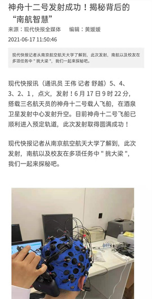 中国新闻网:神舟十二号载人飞船发射成功 揭秘背后的“南航智慧”