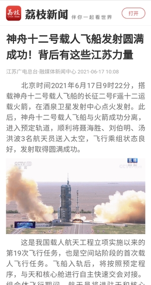 江苏广电总台:神舟十二号载人飞船发射圆满成功!背后有这些江苏力量