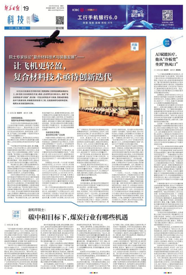 新华日报:院士专家纵论“复合材料技术与装备发展”—— 让飞机更轻盈,复合材料技术亟待创新迭代