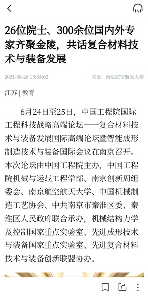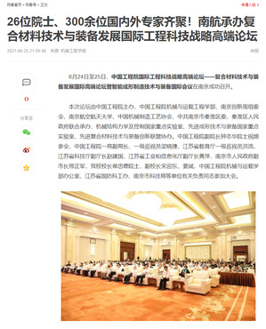 机械工程学报:26位院士、300余位国内外专家齐聚!南航承办复合材料技术与装备发展国际工程科技战略高端论坛