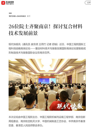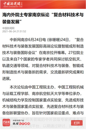 中国新闻网:海内外院士专家南京纵论“复合材料技术与装备发展”