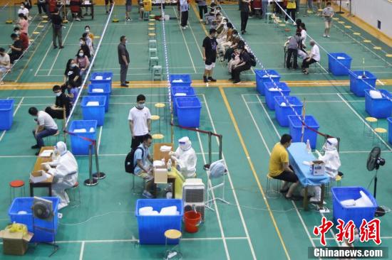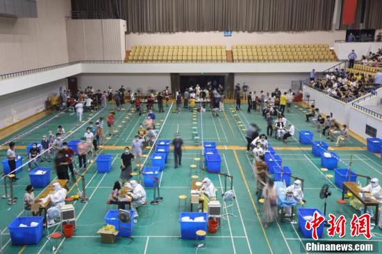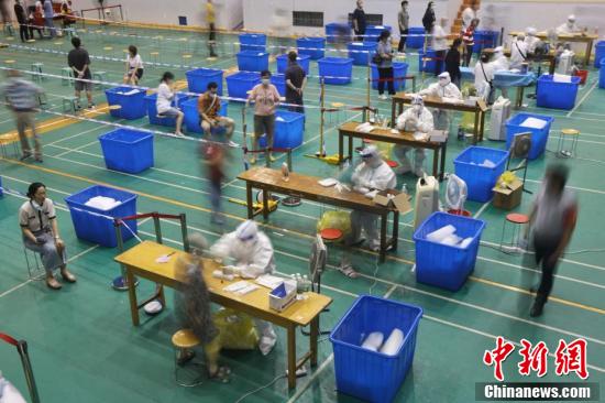 sunbet申搏官方网站明故宫校区体育馆内,师生有序进行核酸检测。 (中新社记者 泱波 摄)