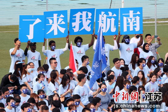“南航我来了”,留学生参加开学典礼。中新社记者 泱波 摄