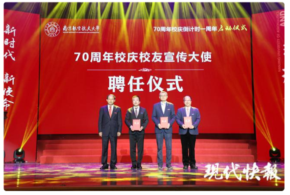“鲲龙”AG600 总设计师黄领才、国家重点直升机型号总设计师邓景辉、2020 年度“杰出工程师”吴云坤一一现场亮相,受聘担任校友宣传大使。南航校长单忠德宣读《sunbet申搏官方网站 70 周年校庆 1 号公告》。