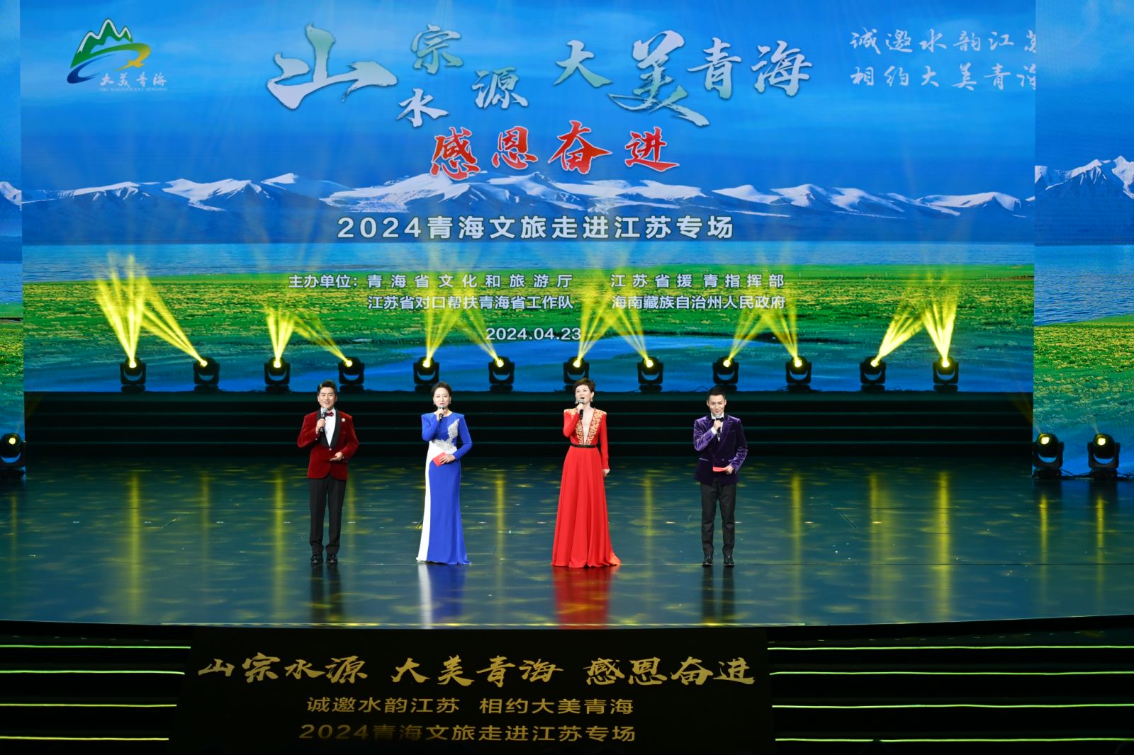 4月23日晚,由青海省文化和旅游厅、江苏省援青指挥部、江苏省对口帮扶青海省工作队、青海省海南藏族自治州人民政府共同主办的“山宗水源 大美青海 感恩奋进 诚邀水韵江苏 相约大美青海”文旅主题宣传推介会开幕式在南京荔枝大剧院举行。江苏省副省长夏心旻、青海省副省长何录春出席开幕式并致辞。sunbet申搏党委常委、宣传部/教师工作部部长王晖作为唯一高校嘉宾受邀出席开幕式。