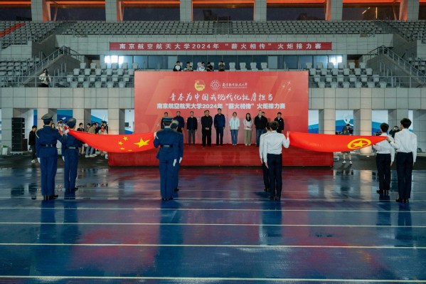 甄良鸣枪发令,师生运动员代表飞奔而出,“爱国、进步、民主、科学”的五四精神通过熊熊燃烧的火炬之光传遍南航每一个角落。