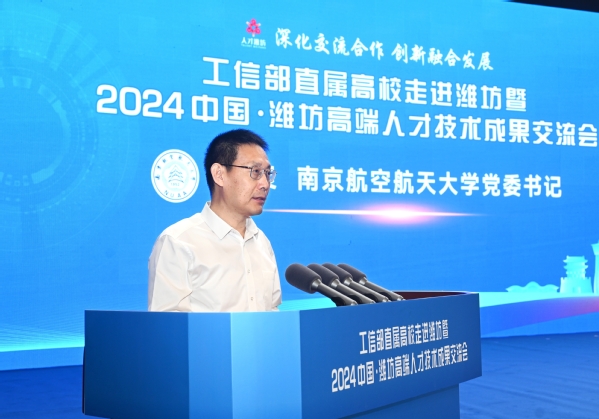 5月25日,工信部直属高校走进潍坊暨2024中国·潍坊高端人才技术成果交流会举行。潍坊市委书记刘运,市政协主席李爱杰,中国工程院院士宫声凯,工信部直属高校负责同志等领导嘉宾出席会议。sunbet申搏党委书记甄良出席活动并致辞。