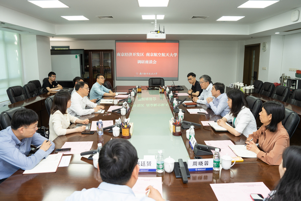 蓝军感谢学校的热情接待,对南航近年来高质量发展所取得的成绩给予高度评价。他介绍了南京经济开发区总体情况,并围绕如何将学校的优势和开发区的优势相结合,打造政府、高校、企业深度合作的产学研联合体等方面交流了意见。任超围绕如何将研究生在企业的实习实践做实,调动高校与企业、导师与研究生的积极性,推动产教融合、卓越工程师培养发表了意见。