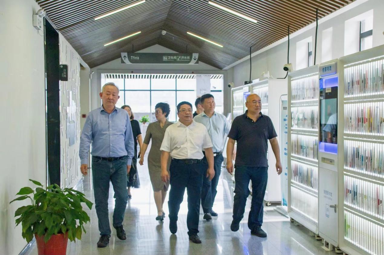 会前,严汝建一行实地调研了行政楼沙盘、“一站式”学生社区、健翔体育中心、学生公寓、监控大厅等地。