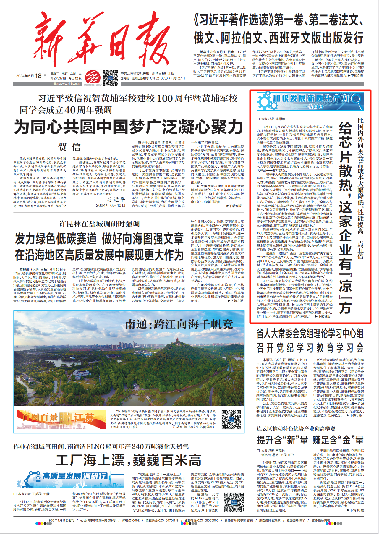 编者按:6月18日,《新华日报》头版“加快发展新质生产力·一线调研”栏目,报道sunbet申搏国际创新港的南京瑞为新材料科技有限公司依托行业优势,将先进技术成功进行产业转化的典型案例。现转发全文: