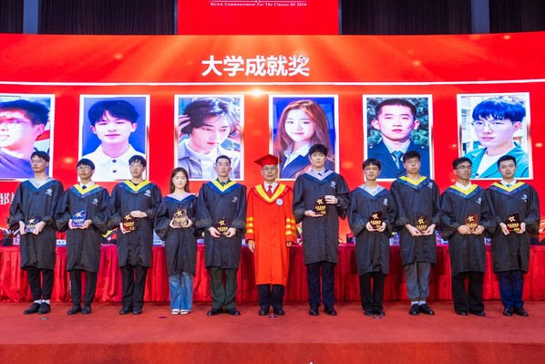 校党委书记甄良为2024届大学成就奖获奖者颁奖。10位“有理想、有作为、有影响力”的优秀毕业生获得表彰。