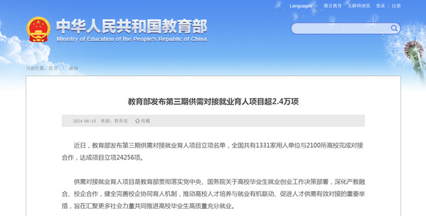 前期学校获批教育部第一期、第二期供需对接就业育人项目41项,目前累计获批供需对接就业育人项目96项。下一步,学校将以推进供需对接就业育人项目实施为契机,积极整合资源,深化校企合作,推动人才培养与就业有机联动,人才供需有效对接,全力促进毕业生高质量充分就业。