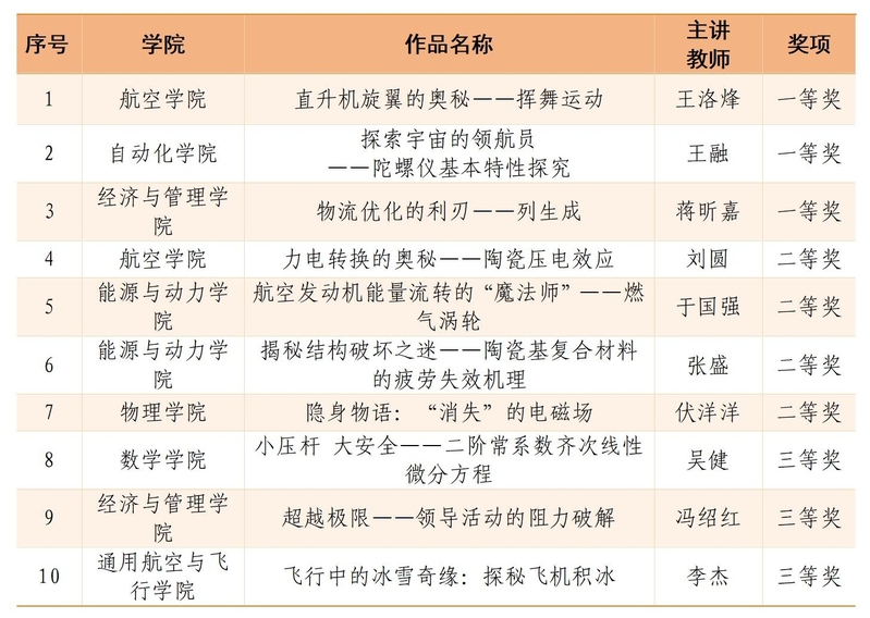 近日,2024年江苏省高等学校微课教学比赛获奖名单揭晓,sunbet申搏推荐参加省赛的10件作品全部获奖。航空学院王洛峰、自动化学院王融、经济与管理学院蒋昕嘉荣获省一等奖,能源与动力学院于国强等4位主讲教师荣获省二等奖,数学学院吴健等3位主讲教师荣获省三等奖。sunbet申搏连续4年推荐微课作品全部获奖。