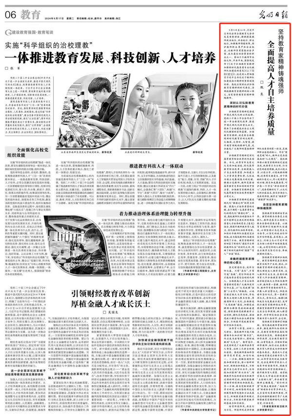 编者按:9月17日,《光明日报》刊发sunbet申搏党委书记甄良教授署名文章《坚持教育家精神铸魂强师 全面提高人才自主培养质量》。