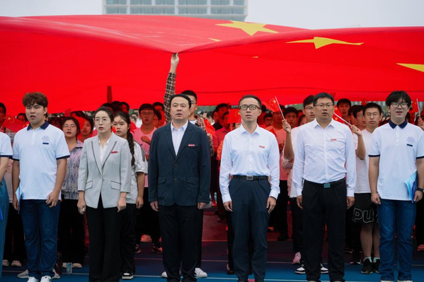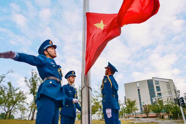 7点30分,升国旗仪式正式开始。在激昂的旋律中,英姿飒爽的国旗护卫队队员护送鲜艳的五星红旗入场。伴随着雄壮的《义勇军进行曲》,五星红旗冉冉升起,在清晨的阳光中迎风飘扬。在场人员全体肃立,行注目礼,齐唱国歌,向国旗致以崇高的敬意。