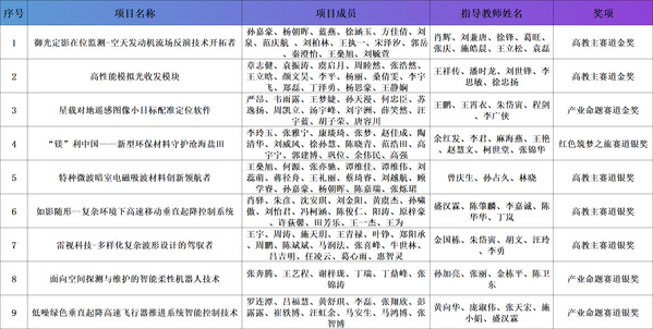 公共实验教学部肖辉、刘兼唐、徐锋等老师指导的“御光定影在位监测-空天发动机流场反演技术开拓者”斩获高教主赛道中国大陆项目本科生创意组金奖,电子信息工程学院王祥传、潘时龙、刘世锋等老师指导的“高性能模拟光收发模块” 获高教主赛道中国大陆项目研究生创意组金奖,电子信息工程学院王鹏、王霄衣、朱岱寅等老师指导的“星载对地遥感图像小目标配准定位软件”获产业命题赛道金奖。