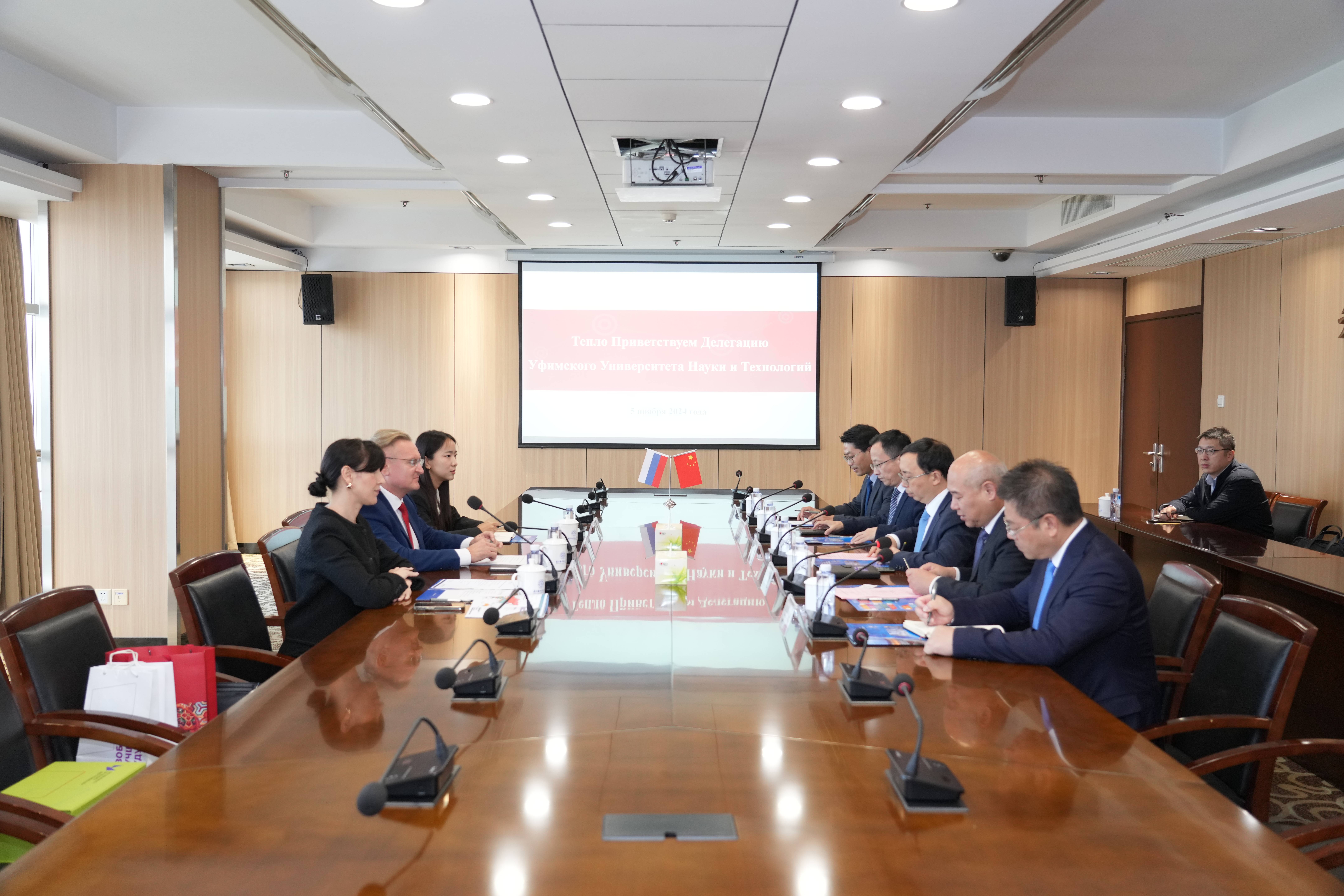 姜斌代表学校对乌法科技大学代表团来访表示热烈欢迎。他回顾了南航与乌法科技大学的历史渊源及合作基础,并简要介绍了学校在学科建设、人才培养、科学研究、国际合作等方面的发展情况。他指出,两校关系密切、合作成果丰硕。今年是中俄建交75周年,希望双方未来全面强化战略合作,将人才联合培养、科研合作攻关、师资交流互访等合作向更宽领域、更深层次拓展,携手实现高质量共赢发展。
