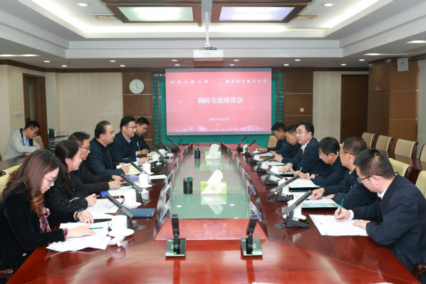 陶勇代表学校向赵水民一行来校交流表示热烈欢迎。他指出,近年来,南航与山西省特别是大同市在科技研发、人才培养、干部交流等方面开展了一系列务实合作,取得了良好成效。山西大同大学作为山西省首批高水平应用型本科高校,为国家和区域发展培养了一大批高素质人才,为支撑地区经济社会发展作出了积极贡献。希望今后南航与山西大同大学在更多领域开展交流合作,共同为建设教育强国贡献力量。