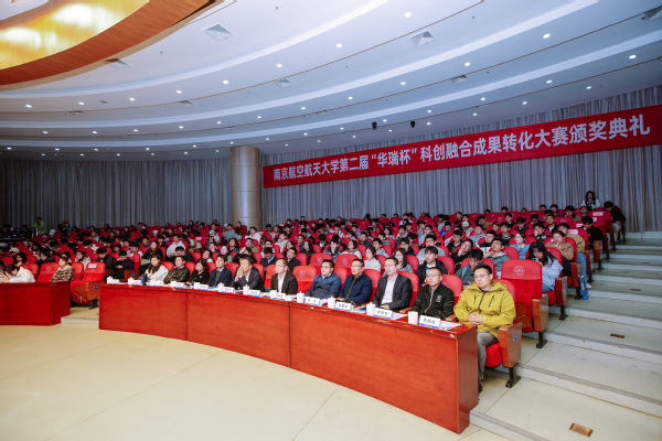 康宜华在致辞中深情回顾了自南航求学到开创事业一路走来的历程,表达了对母校培养的感恩之情和回馈母校、回馈社会的殷切情怀。他表示,华瑞集团一直以来高度重视与南航的合作,“华瑞杯”科创融合成果转化大赛正是深化合作的一个途径,通过大赛挖掘、支持更多具有潜力的项目和优秀人才,为母校的科研创新和成果转化搭建更加广阔的舞台和更加便捷的桥梁,为实现国家的科技强国梦贡献智慧和力量。