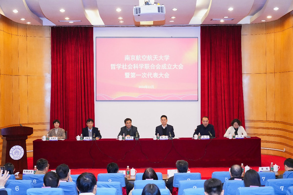 甄良在致辞中指出,成立南航社科联是深入学习贯彻习近平文化思想的生动实践,也是落实党的二十届三中全会精神、全国教育大会精神、进一步全面深化改革的重要举措。希望南航社科联提高政治站位、强化思想引领,研究回答时代问题,落实立德树人根本任务,扛牢哲学社会科学守正创新、资政育人的重要使命;强化自身优势、突出平台特色,积极开展跨学科、跨领域的有组织科研,深化平台载体建设,打造具有全国影响力、体现江苏特色、彰显南航风格的智库品牌;强化责任担当、促进社科繁荣,充分发挥思想库和智囊团作用,加强理论和应用研究,提升决策咨询水平,赋能江苏省哲学社会科学在推进中国式现代化中走在前做示范,为繁荣发展我国哲学社会科学作出应有贡献。