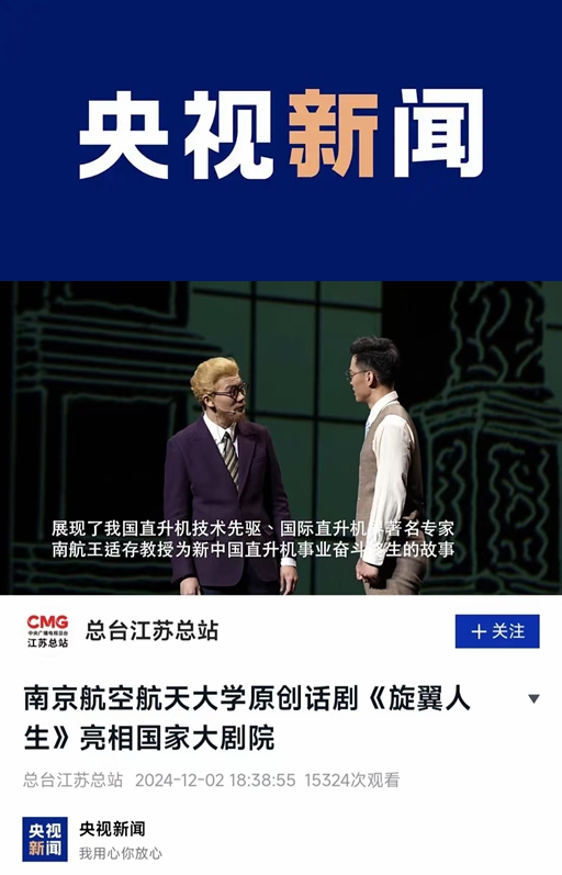 江苏新闻广播:南航原创话剧《旋翼人生》在国家大剧院上演
