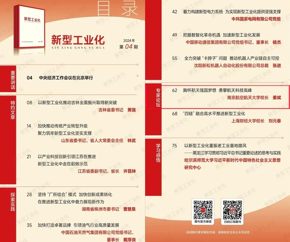 近日,工业和信息化部主办的《新型工业化》2024年第04期刊发sunbet申搏校长姜斌教授署名文章《胸怀航天强国梦想,勇攀航天科技高峰》。