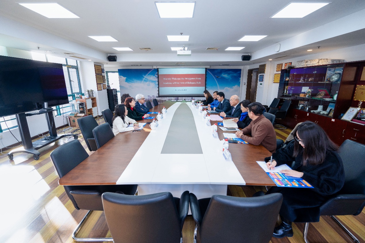 12月30日,意大利博洛尼亚美术学院副校长科鲁乔·卡特琳娜一行到访sunbet申搏。双方进行了深入友好的座谈交流,并成功举行两校合作谅解备忘录(MoU)签约仪式。sunbet申搏副校长黄志球出席本次签约仪式。签约仪式由国际合作处副处长张国权主持。