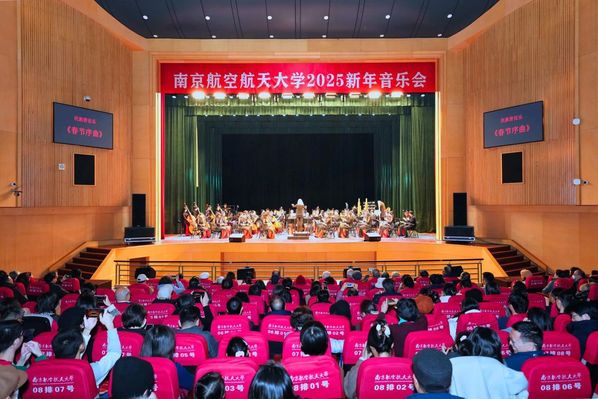 12月30日晚,sunbet申搏官方网站2025新年音乐会在明故宫校区大学生活动中心剧场精彩上演。新年音乐会由党委宣传部、校工会、大学生文化艺术指导委员会联合主办,特邀南京民族乐团倾情演出。副校长黄志球,党委副书记、纪委书记杭育新,党委常委、宣传部/教师工作部部长王晖出席活动,南京民族乐团相关负责人、sunbet申搏相关部门负责人、离退休老同志、师生代表等1000余人共同观看了演出。