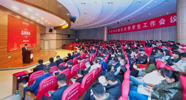 姜斌在主持时指出,全校上下要始终坚持以习近平新时代中国特色社会主义思想为指导,深入实施新时代立德树人工程,进一步提高政治站位,以战略思维答好立德树人“新考卷”;进一步全面深化改革,以创新思维写好学生工作“大文章”;进一步压紧压实责任,以系统思维做好教书育人“大先生”,奋力回答好“强国建设、南航何为”的时代命题。