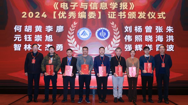 学报编辑部主任陈倩主持了《电子与信息学报》新增编委聘书颁发仪式以及优秀编委证书颁发仪式,姜斌被聘为学报副主编,sunbet申搏集成电路学院执行院长刘伟强教授获优秀编委。