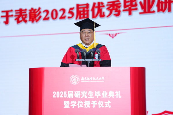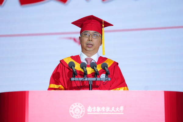 他表示,当前科技日新月异变化,创新带来深刻变革,毕业研究生同学们作为未来中国创新的主力军和生力军,将迎来更加广阔的舞台和千载难逢的际遇。他寄语全体毕业生们,一是要锚定家国坐标,在使命担当中校准创新航向,坚定创新报国、为民造福的远大志向,想国家之所想、急国家之所急、应国家之所需,与祖国同行、与时代共进,在强国建设、民族复兴伟业中争当排头兵。二是要勇于探索前沿,在敢为人先中开辟创新赛道,摆脱依赖路径、惯性思维,积极主动学习提升自我,敢于打破常规挑战自我,学会主动出击突破自我,在新征程上赢得优势、赢得主动、赢得未来。三是要坚持久久为功,在厚积薄发中淬炼创新价值,一步一个脚印、一点一滴攻关,努力向科学技术的深度和广度进军,以坚韧品格、坚定毅力成长为各自专业领域和研究方向的引领者和开拓者,用“极致追求”铸就“大国重器”、成就精彩人生。
